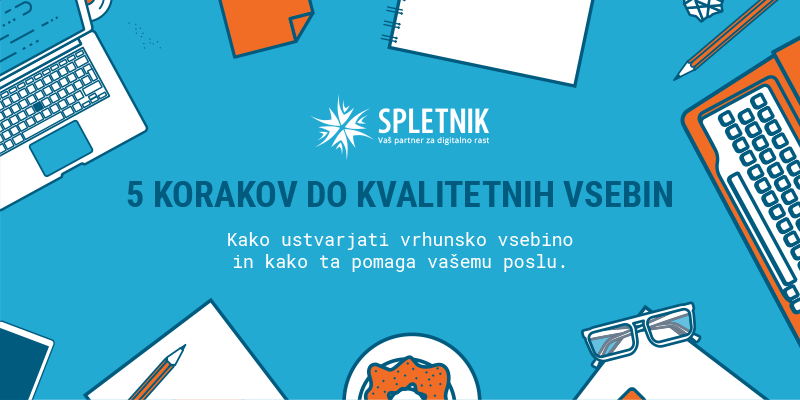 Pri optimizaciji spletnih strani (Search Engine Optimization – SEO) je zelo pomembna vsebina. Velikokrat slišimo stavek “Content is King”, zato naj vam v 5 korakih predstavimo, zakaj ta trditev drži. Vsebino lahko dostavimo v obliki različnih blog zapisov, kar pomeni, da ponudimo neko informativno ali poučno vsebino na spletni strani, ki opisuje vaše produkte in storitve.