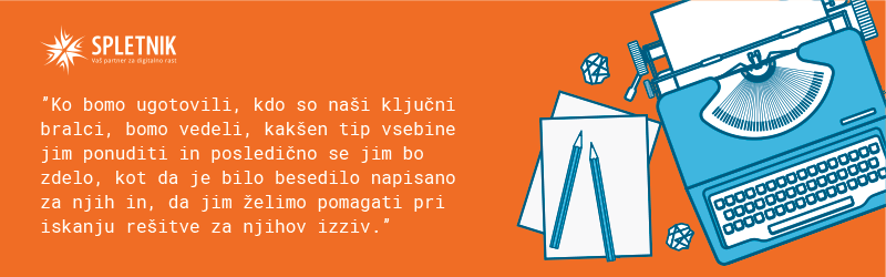 Ko bomo ugotovili, kdo so naši ključni bralci, bomo vedeli, kakšen tip vsebine jim ponuditi in posledično se jim bo zdelo, kot da je bilo besedilo napisano za njih, obenem pa bodo tudi imeli občutek, da jim želimo pomagati pri iskanju rešitve za njihov izziv.